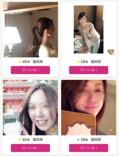 男女比についてはそもそも男性ユーザーは男性が表示されないので分かりませんでしたが、会員数に関しては女性会員が少ないと感じる事はありませんでしたね。