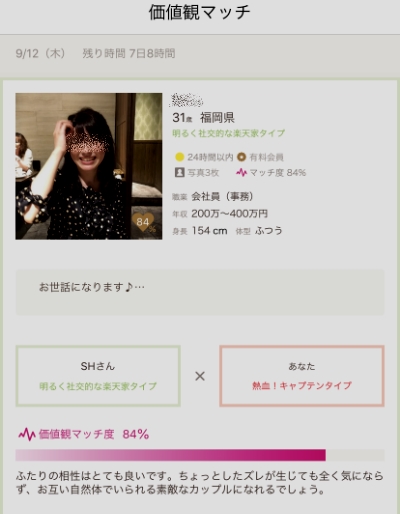 この価値観診断の結果に基づいて、アルゴリズムでピッタリの相手を紹介してくれるのですが、これが結構筆者の好みに近かったりするからビックリでした。
