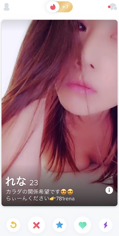 更に、ティンダーは無料バージョンでもメッセージ交換などができるので、セフレを探すレベルで使うのもありだと思いますが、無料で使える点でセフレ募集を装ったキャラ誘導業者も多いのです。
